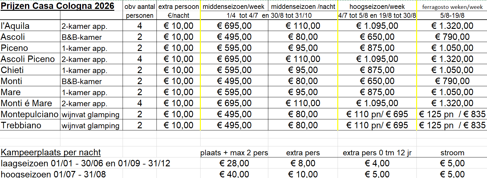 Casa Cologna vakantie appartementen, B&B, camping en glamping in Abruzzo Italia